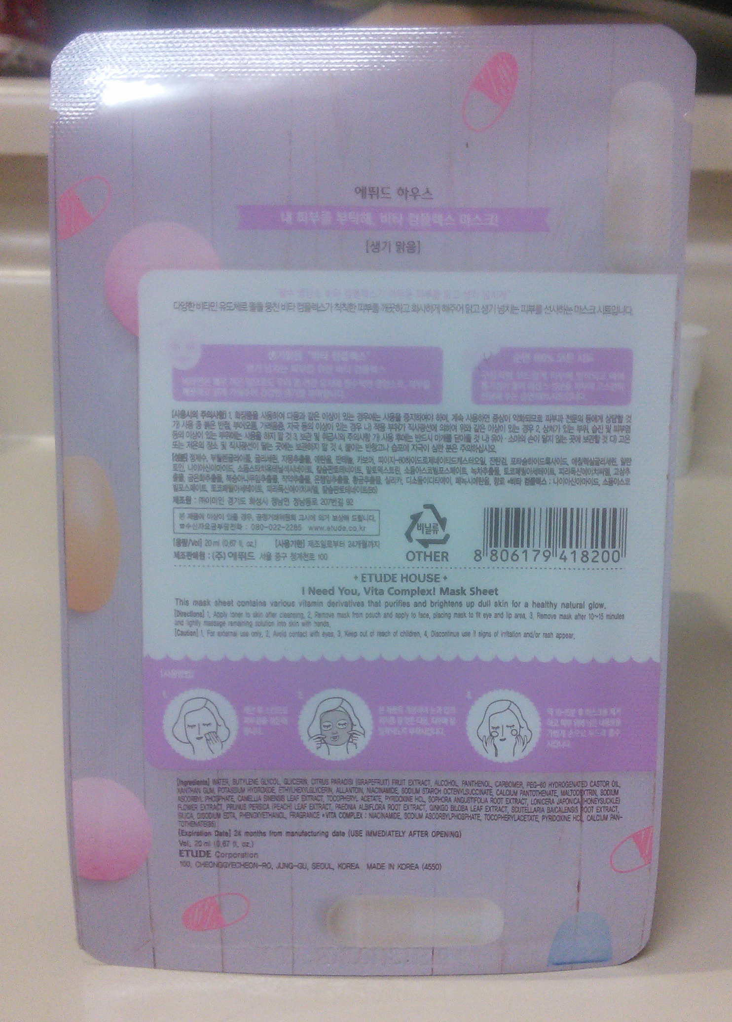 Did you think I was done with reviewing sheet masks? Not even close! I’ve got over fifty stashed in my crisper as we speak, and I’m having a blasty blast trying out all the different varieties and figuring out which ones I love (and don’t love). Today we’re going to take a look at my first ever Etude House I Need You sheet mask. Last night I tried out the Vita Complex mask.