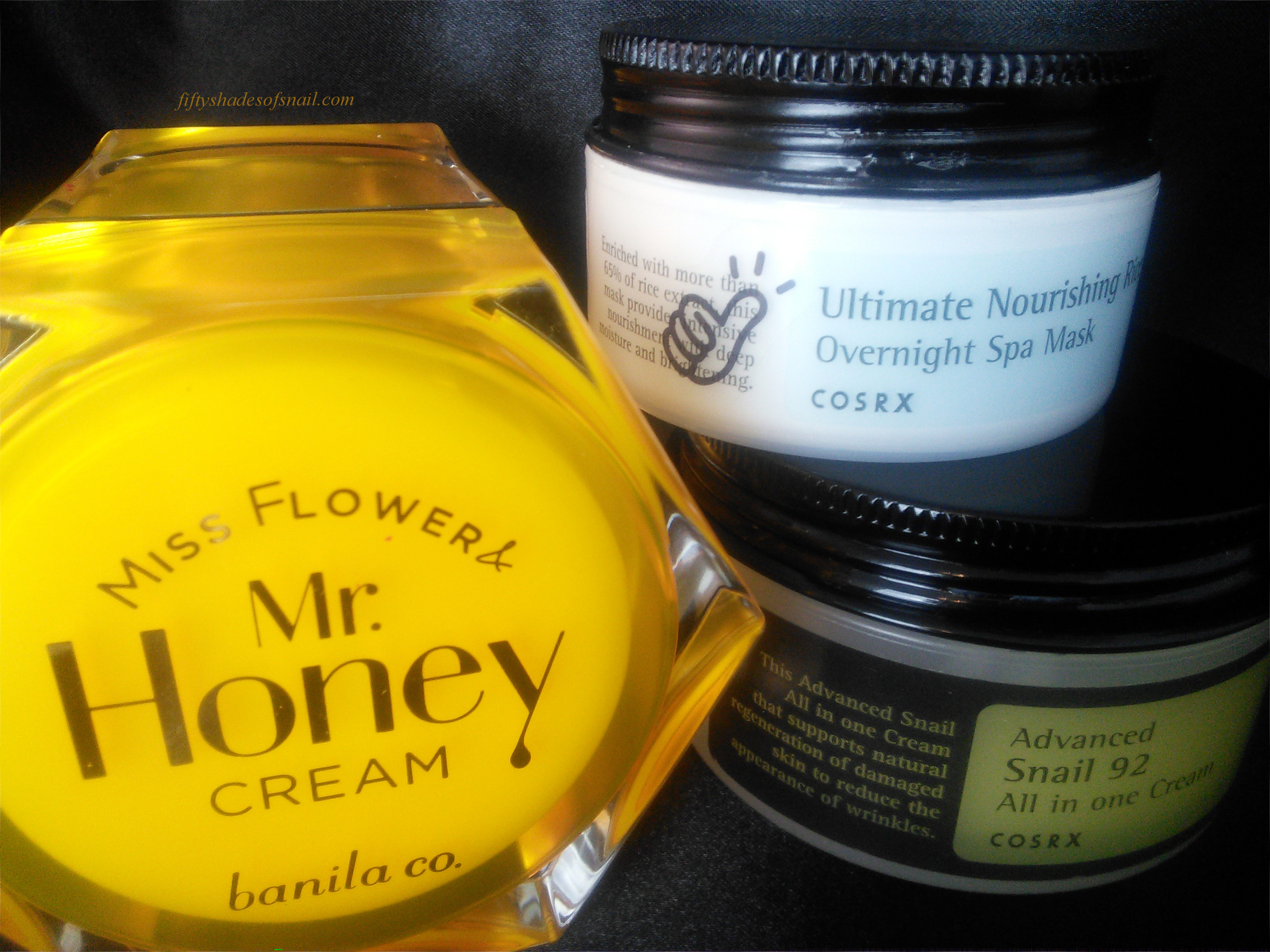 Here we see three celebrities of the AB world: the beautiful and glamorous honey cream, the pure and unassuming snail cream, and this year’s surprise superstar, the rice sleeping pack.