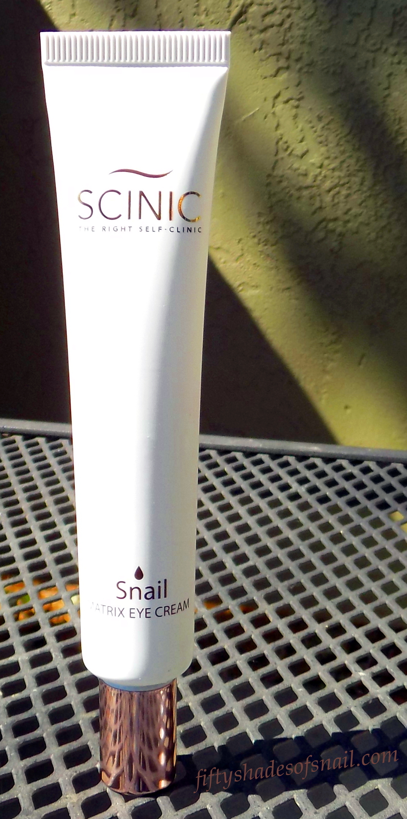 Scinic Snail Matrix Eye Cream ingredients:  Water, snail secretion filtrate, glycerin, caprylic/capric triglyceride, butylene glycol hydrogenated polyisobutene, beeswax, PEG-100 stearate, betaine, polysorbate 60, sodium polygamma-glutamate, panthenol, sodium hyaluronate, cyclopentsiloxane, trideceth-6, PEG/PPG-18/18 dimethicone, cetearyl alcohol, butyrospermum parkii (shea) butter, glyceryl polymethacrylate, hordeum vulgare seed extract, cucumis sativus (cucumber) seed extract, panax ginseng seed extract, punica granatum seed extract, sodium polyacrylate, xanthan gum, propylene glycol, aloe barbadensis leaf juice powder, dipotassium glycyrrhizate, carbomer, dimethicone, borago officinalis seed oil, prunus amygdalus dulcis (sweet almond) oil, macadamia integrifolia seed oil, helianthus annuus (sunflower) seed oil, brassica campestris (rapeseed) seed oil, microcrystalline wax, sorbitan stearate, tocopheryl acetate, disodium EDTA, adenosine, human oligopeptide-1, rh-polypeptide-7, triethanolamine, phenoxyethanol, imidazolidinyl urea, BHT, fragrance (CosDNA)