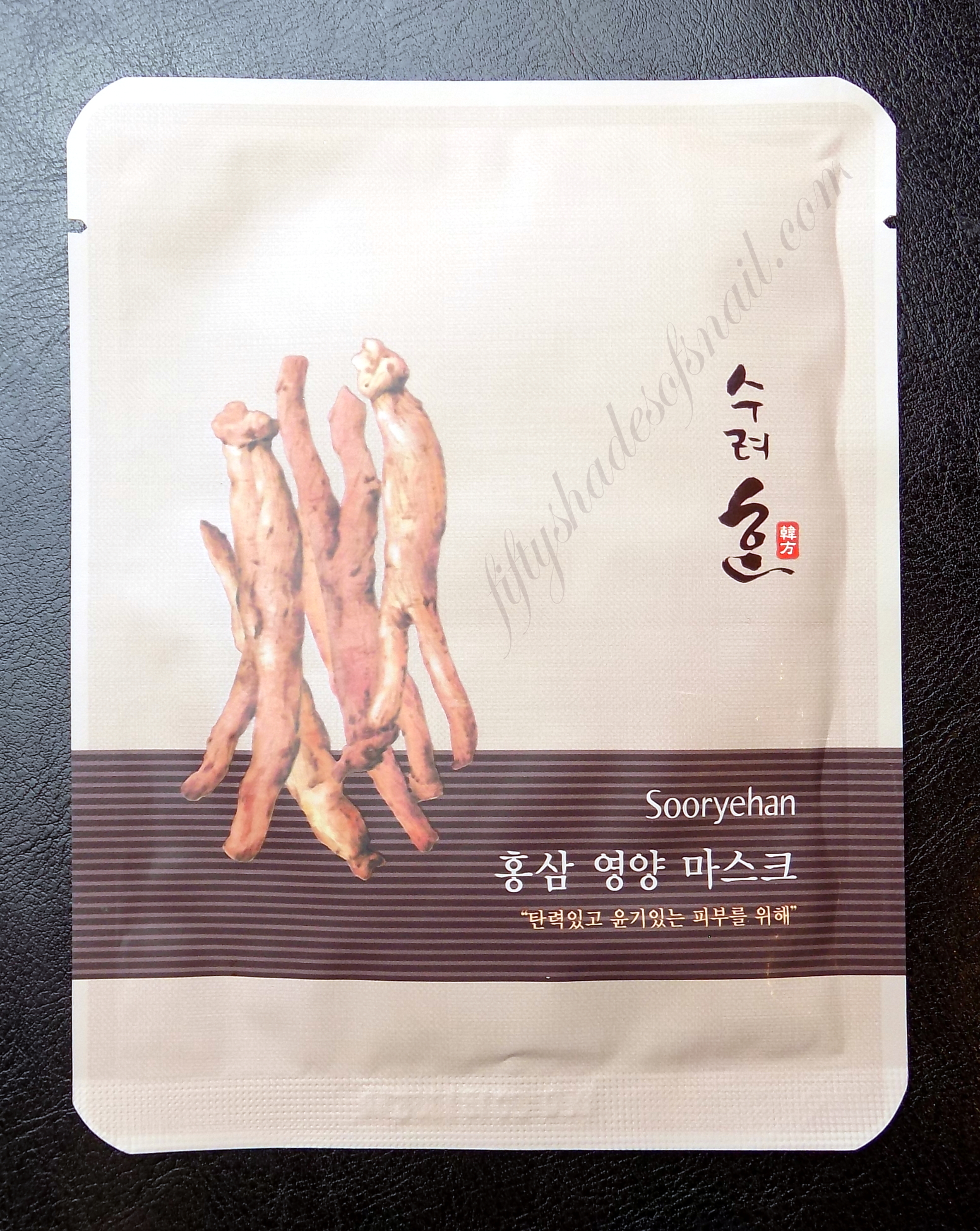 So she sent me a link to the eBay listing for something that she knew would get me going faster than that Kim Jongin wedgie Pinterest board she curates with Chel from Holy Snails: a pack of 10 Sooryehan Red Ginseng Nutrition Mask*. The masks sounded so promising. Well known hanbang skincare brand? Check. Ginseng? Check. Sheet mask? Check. I tore right into them the very night they arrived.