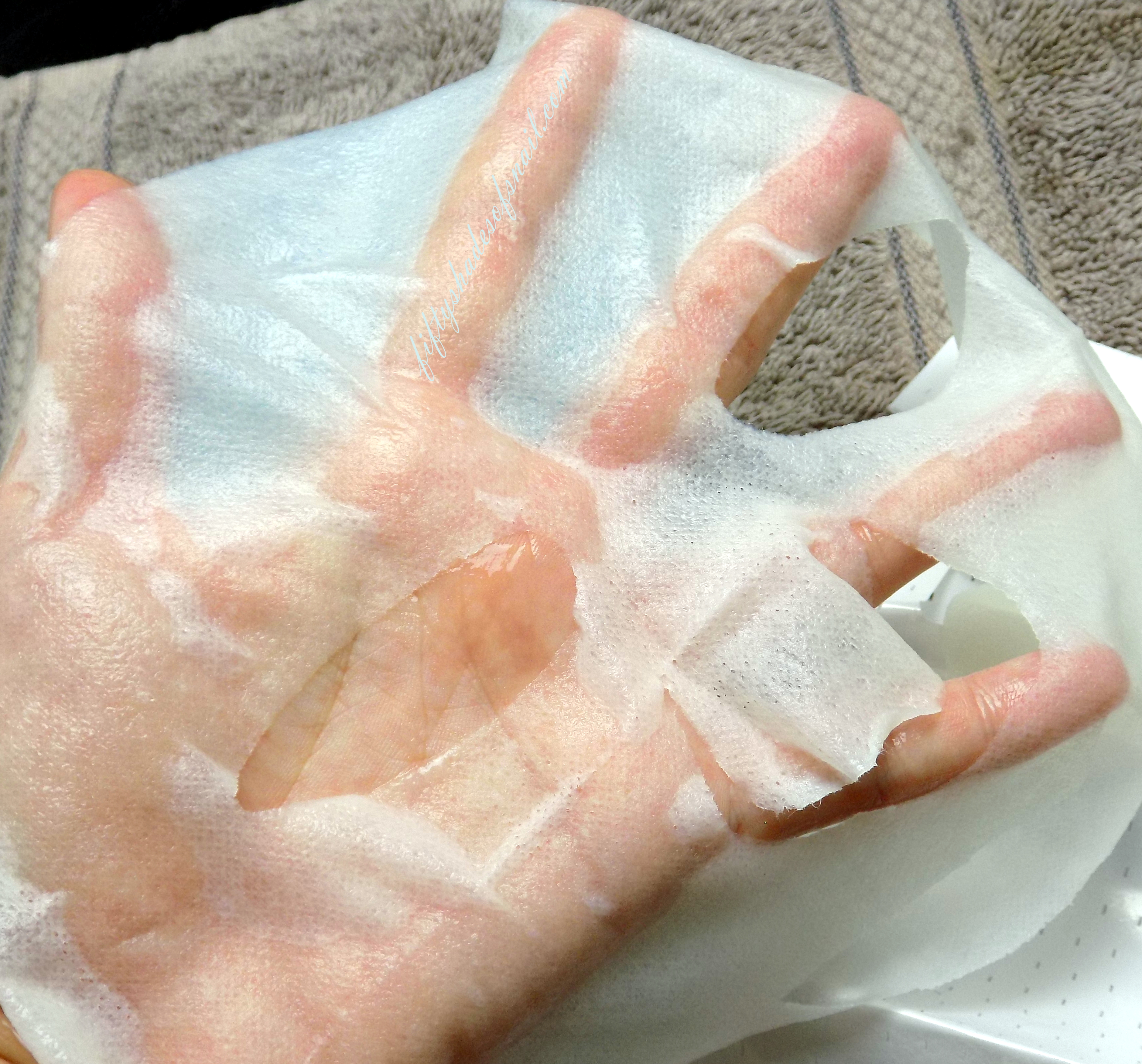 These masks stay moist for about 30-35 minutes for me, though I can stretch their wear time out to about 40 minutes by pregaming with an extra layer of mask essence applied before I put on the mask. The material can get a bit itchy as it dries, though for me, that only happens when it’s time to take the mask off anyway.