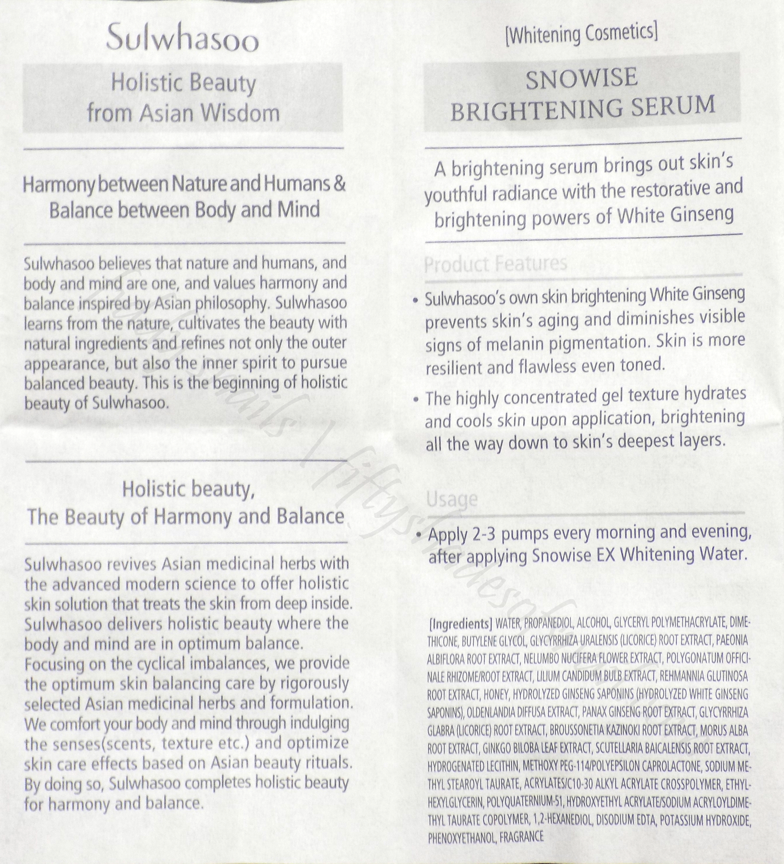 Sulwhasoo Snowise Brightening Serum English ingredients