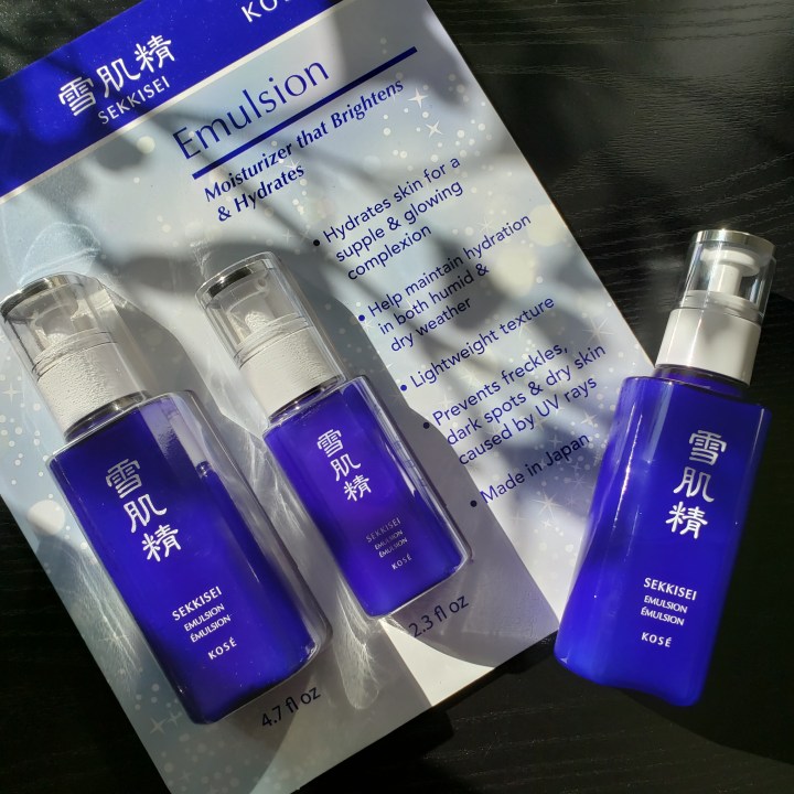 Desperate for an additional layer of moisture one night, I spotted the SEKKISEI Emulsion lying in a stack of newly unboxed products and thought, oh what the hell, why not. I slathered two pumps on after my sheet mask. The rest is history.